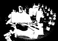 auf das Werk der Gemäldeherstellung, Materialaufbereitung und eigentlichen Werkraum mit typischem Malerutensil...